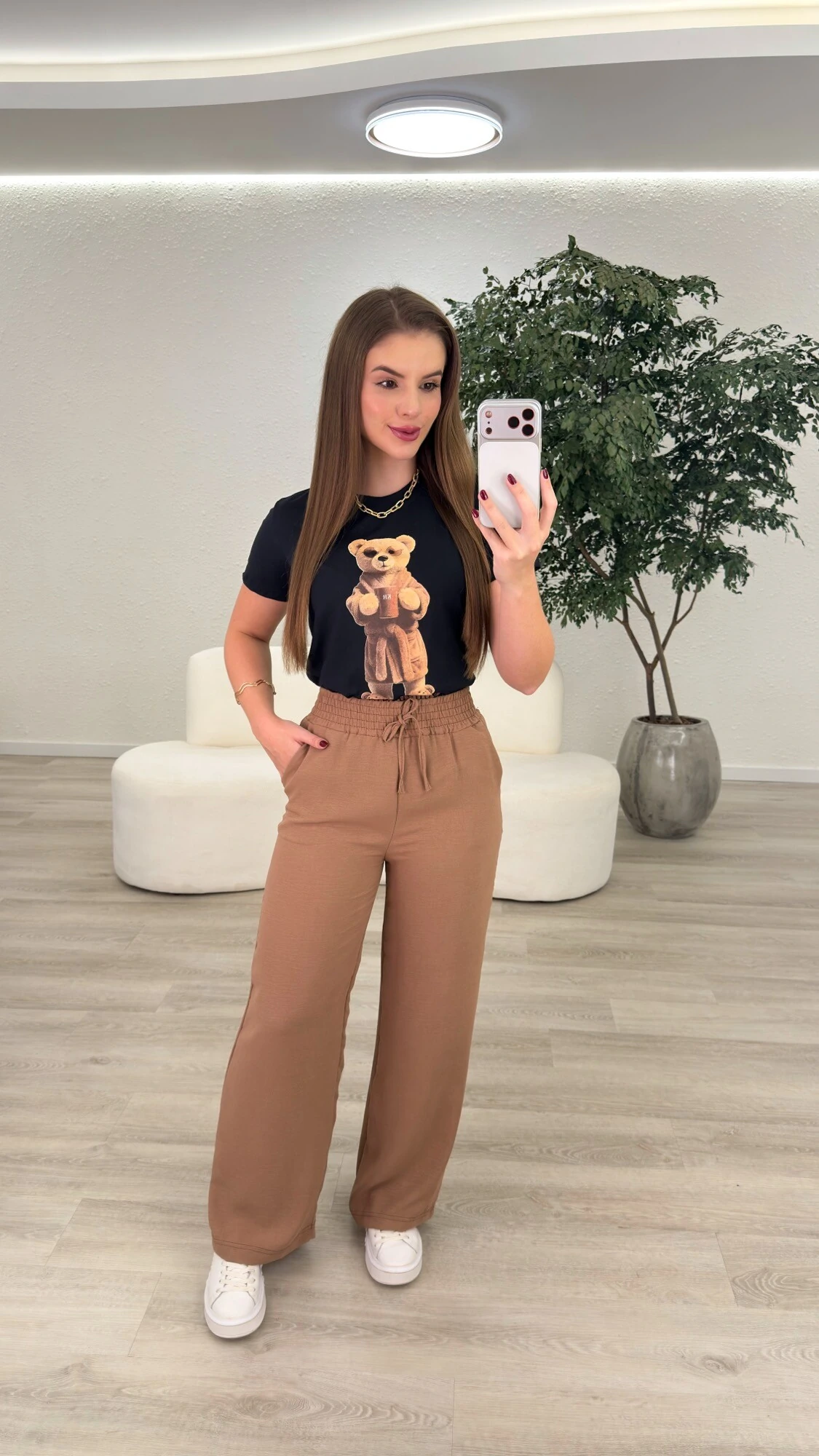 • Possui elástico na cintura;